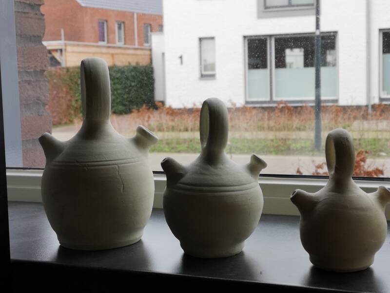 Dat ze na al die jaren nog steeds heel zijn, mag een wonder heten, er is zelfs nog geen schilfertje af. De kruikjes zijn namelijk na hun reis uit Spanje al vier keer verhuisd.