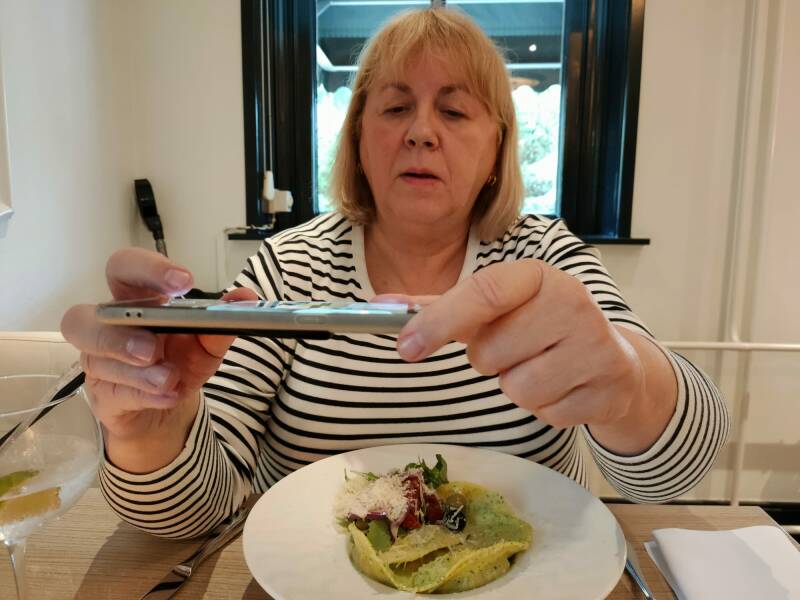 De foto die Laurence van mij maakte terwijl ik het eten fotografeer.