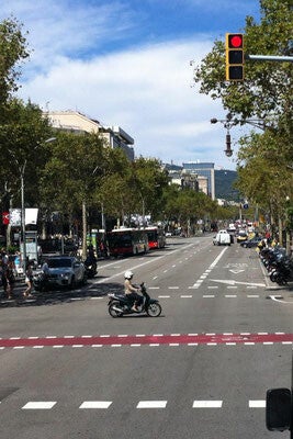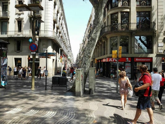In het midden is het een gezellige boulevard die alleen voor voetgangers toegankelijk is en die in zuidoostelijke richting loopt van Placa Catalunya tot aan Port Vell.