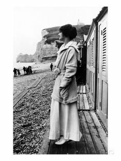 In het populaire Franse kustplaatsje Deauville werd zij geïnspireerd door het beige zand van het strand, de blauwe zee en de bootjasjes en gestreepte matrozenpakken van de scheepsbemanning.