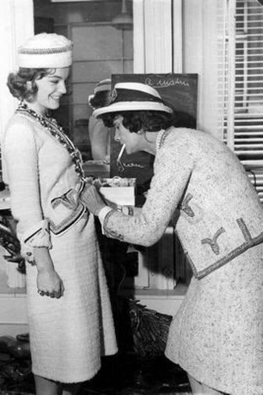 In de jaren '50 introduceerde ze het deux-pièce, bekend geworden als het chanelpakje, en de update van de handtas met schouderriem 2.55 (naar de introductie in februari 1955), die bijna net zo beroemd is als haar parfum. Ze was toen al over de zeventig.